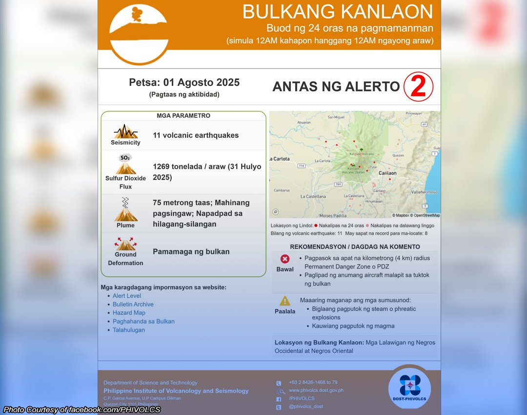 Iniulat din ang pamamaga ng Bulkang Kanlaon sa nakalipas na 24 oras.
