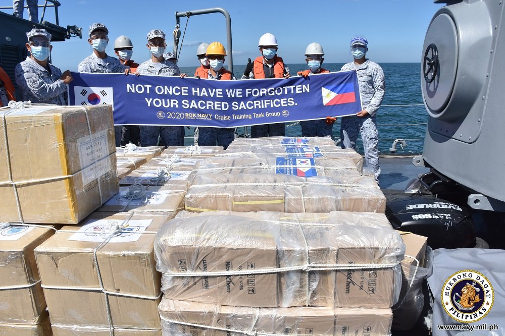 Ayon sa mensaheng ipinarating kay Navy Flag Officer In Command (FOIC) Vice Adm Giovanni Carlo Bacordo, dumaan sa Manila ang ROKS Kang Gam-chan (DDH-979) at ROKS Soyang (AOE-51) kabilang ang ROKN Cruise Training Task Group bilang bahagi ng kanilang paglalakbay sa iba’t ibang puerto at upang ihatid ang kahon-kahon na face mask at hand sanitizers.