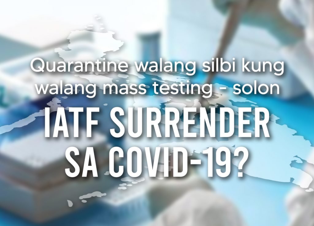 Quarantine walang silbi kung walang mass testing – solon IATF SURRENDER SA COVID-19?