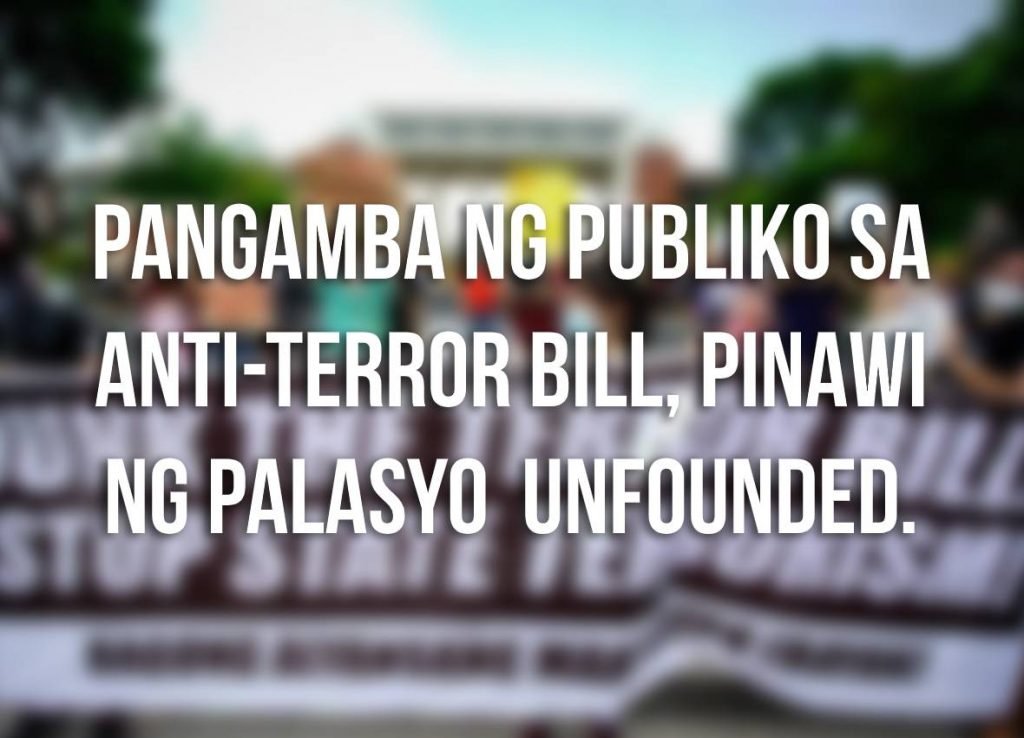 PANGAMBA NG PUBLIKO SA ANTI-TERROR BILL, PINAWI NG PALASYO UNFOUNDED.