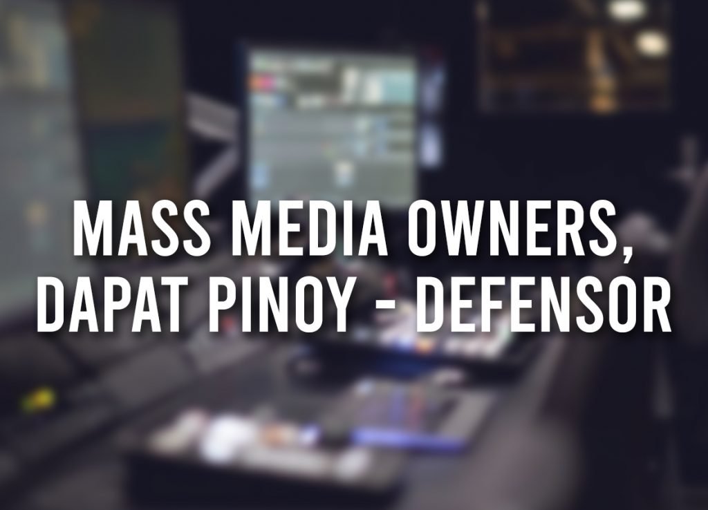 Read MoreMASS MEDIA OWNERS, DAPAT PINOY – DEFENSOR