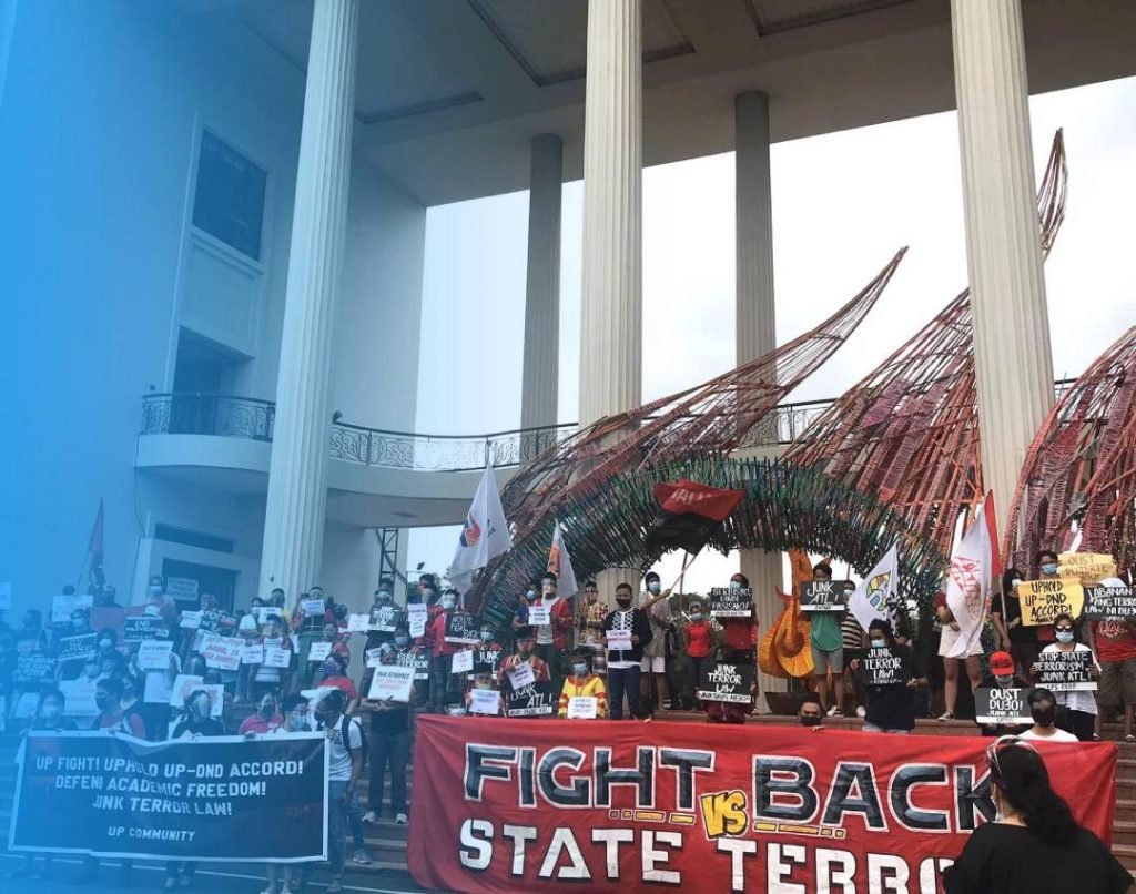 (JESSE KABEL) IBINASURA na ng Department of National Defense nitong Lunes ang “No cops, no troops deal” sa University of the Philippines (UP) kung saan itinatakda na kailangan munang humingi ng permiso ang mga awtoridad bago pumasok sa mga campus ng nasabing pamantasan. Ayon kay Defense Secretary Delfin Lorenzana, hindi na napapanahon ang nasabing kasunduan at nagiging balakid umano ito sa militar at pulis na bigyang proteksyon ang UP Community lalo pa at nakumpirmang may recruitment ang Communist Party of the Philippines sa loob ng pamantasan. Nilinaw rin ng kalihim…