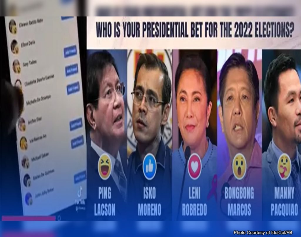 MAKARAANG maglabasan ang isang viral video ng pagmamaneobra sa isinasagawang online survey, kinastigo ng iba’t ibang grupo ng mga vlogger at netizens ang Rappler dahil umano sa garapalang manipulasyon sa hangaring ikondisyon ang isipan ng publiko pabor sa kanilang isinusulong na kandidato para pangulo. Partikular na tinukoy ng mga vlogger at netizens ang pinakahuling online survey ng Rappler kung saan nagtalaga ang digital news organization ng kanya-kanyang emoticons na kakatawan sa bawat kandidato para sa 2022 presidential derby – wow emoticon para kay dating senador Ferdinand “Bongbong” Marcos, puso naman…