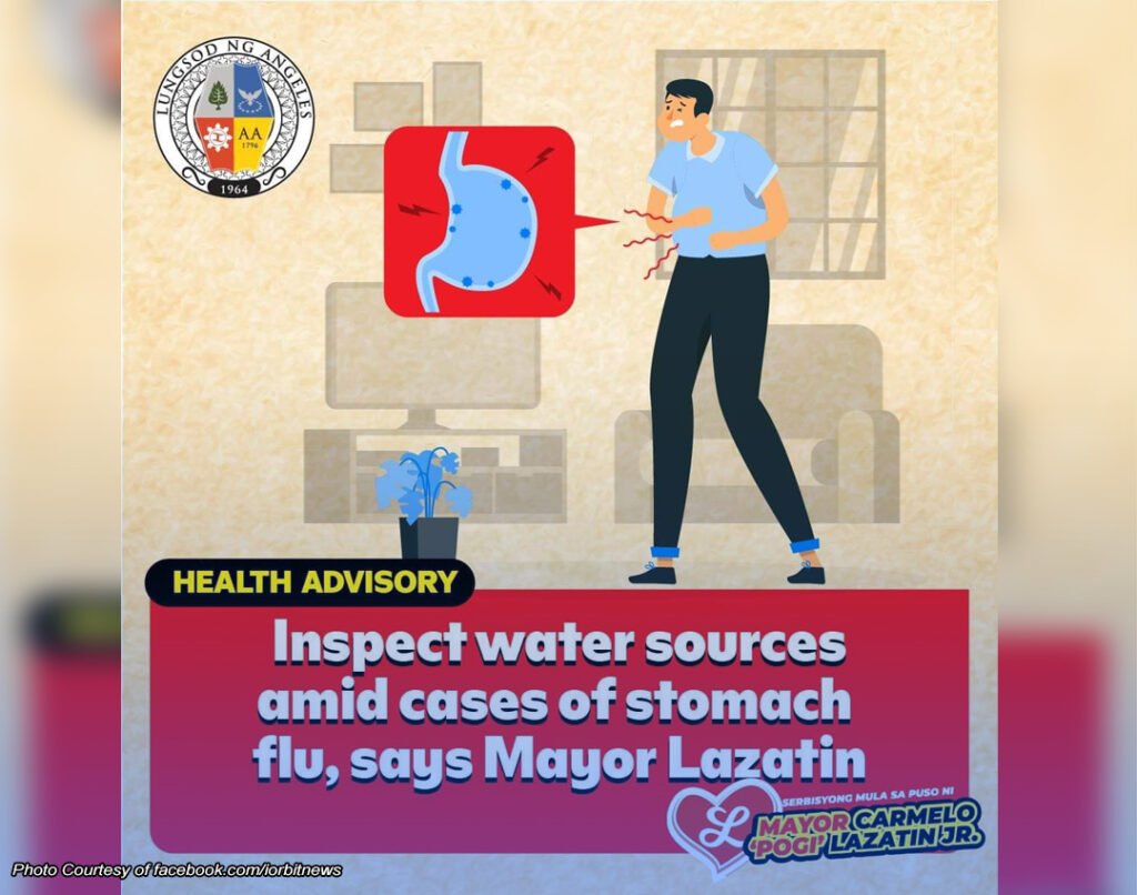 ANGELES CITY – Iniutos ni Mayor Carmelo Lazatin Jr. ang pagsasagawa ng city-wide inspection sa lahat ng water sources sa lungsod makaraang makapagtala ng diarrhea at stomach flu na tumama sa 27 pasyente na na-confine sa Rafael Lazatin Memorial Medical Center (RLMMC). Nabatid na nagkaroon ng ulat ng pagtaas ng mga kaso ng gastroenteritis o stomach flu sa lungsod, na ayon sa RLMMC ay 27 pasyente ang tinamaan ng diarrhea at kasalukuyang ginagamot mula pa noong Pebrero 3 hanggang kasalukuyan. “Mataas, pero walang clustering. Raw data palang, will get more…