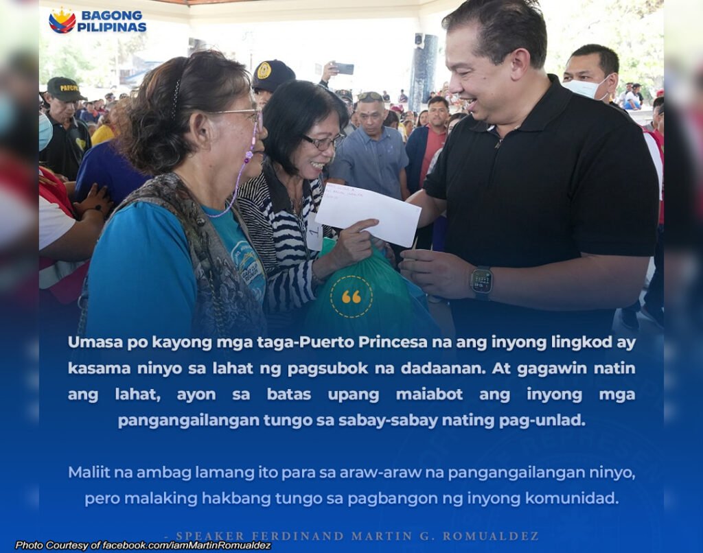 PINANGUNAHAN ni Speaker Ferdinand Martin G. Romualdez, sa tulong ng Department of Social Welfare and Development (DSWD) ang pamimigay ng tulong sa mahihirap na pamilya at mga biktima ng sunog sa Puerto Princesa City. Si Romualdez ang itinalagang caretaker ng ikatlong distrito ng Palawan matapos pumanaw si dating kinatawan at mayor ng Puerto Princesa City na si Edward Hagedorn noong Nobyembre. “It is a duty I embrace with the utmost seriousness-to ensure that you the heart and soul of our community-are supported and uplifted during these trying times,” ani Romualdez,…