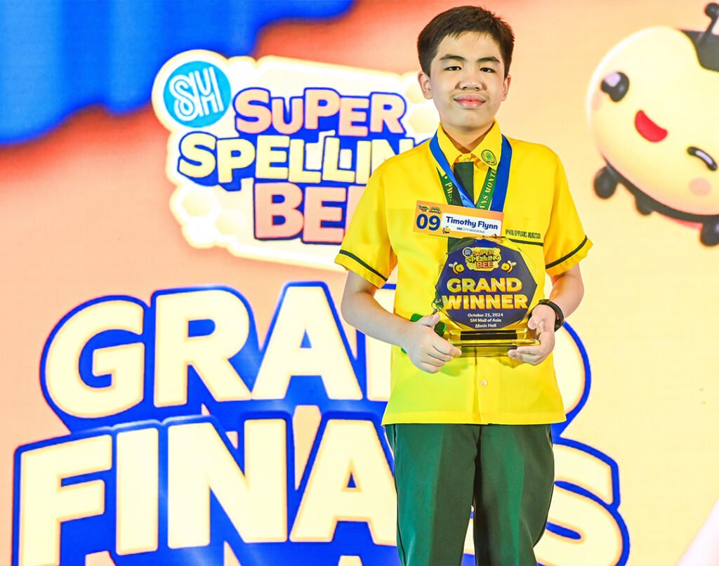 Timothy Flynn Tiamzon from the Philippines Montessori School, Inc., representing SM City Marikina, wins the grand prize at the inaugural SM Super Spelling Bee Grand Finals held at the SM Mall of Asia. The Grand Finals of the first-ever SM Super Spelling Bee captivated audiences at the SM Mall of Asia Music Hall on October 21, 2024. Forty young spelling enthusiasts from across the Philippines competed in a thrilling finale, vying to be crowned the SM Super Spelling Bee’s inaugural champion. The SM Super Spelling Bee, organized in partnership with…
