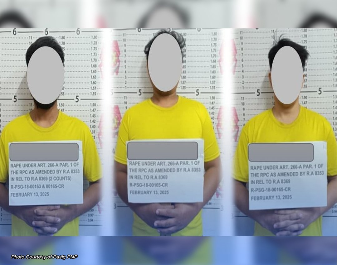 ARESTADO na ang tatlong construction workers na sangkot sa panggagahasa sa isang estudyante sa Pasig City, sa operasyong isinagawa ng mga operatiba ng Pasig City Police Station Intelligence Section kasama ang RIU-NCR, NISG-NCR, RMFB4A 404th A Maneuver Company at iba pang unit.