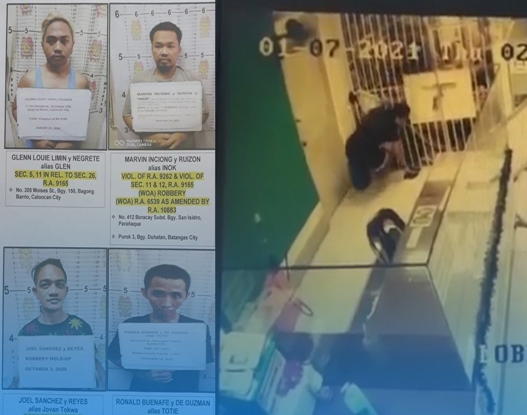 Base sa kuha ng CCTV, dakong alas-2:58 ng madaling araw, nilagari ng apat ang rehas na bakal saka isa-isang lumusot palabas ng presinto at tumakas.