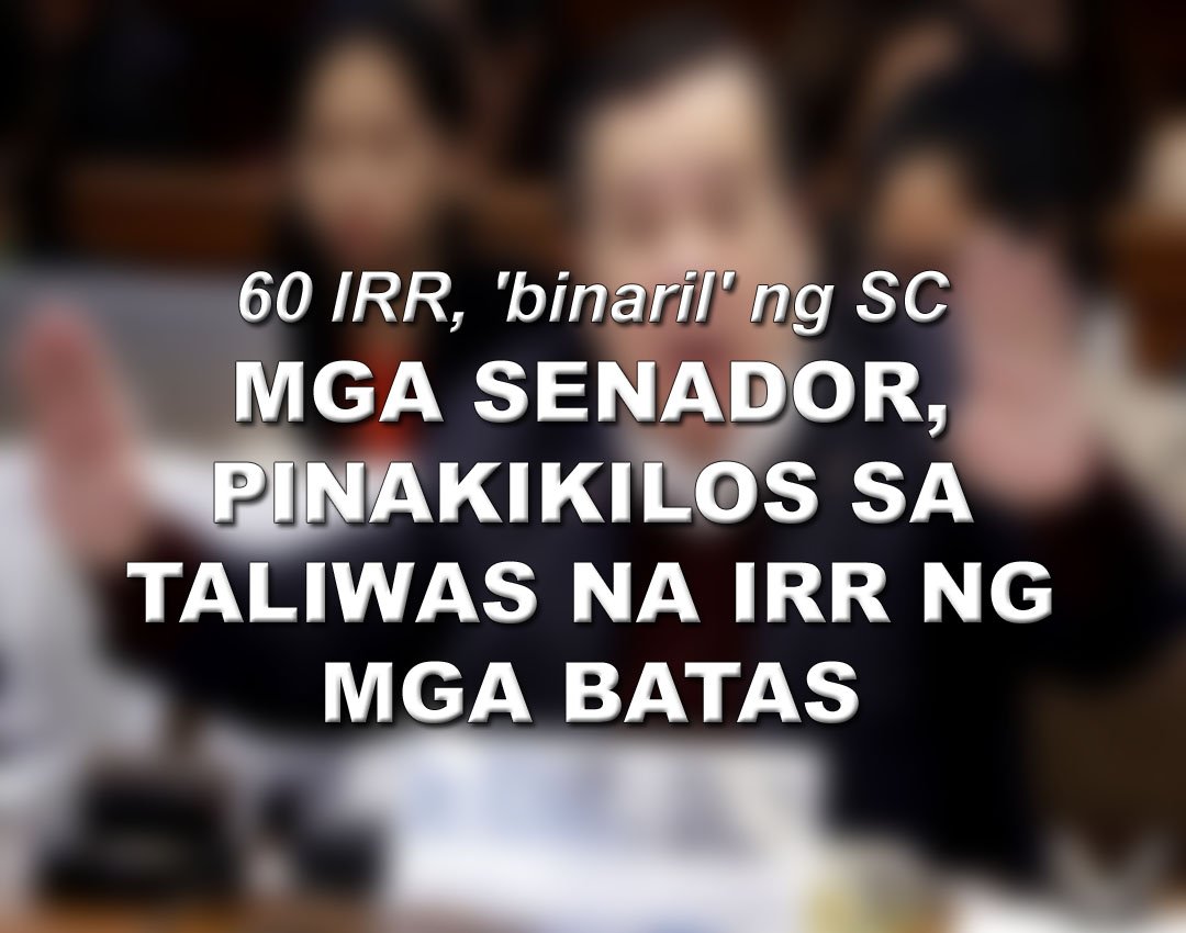 NANAWAGAN si Senador Richard Gordon sa kapwa niya mga senador na kumilos laban sa mga ahensiya ng pamahalaan na depektibo o salungat ang mga implementing rules and regulations (IRR) ng mga batas na ipinasa sa Kongreso.
