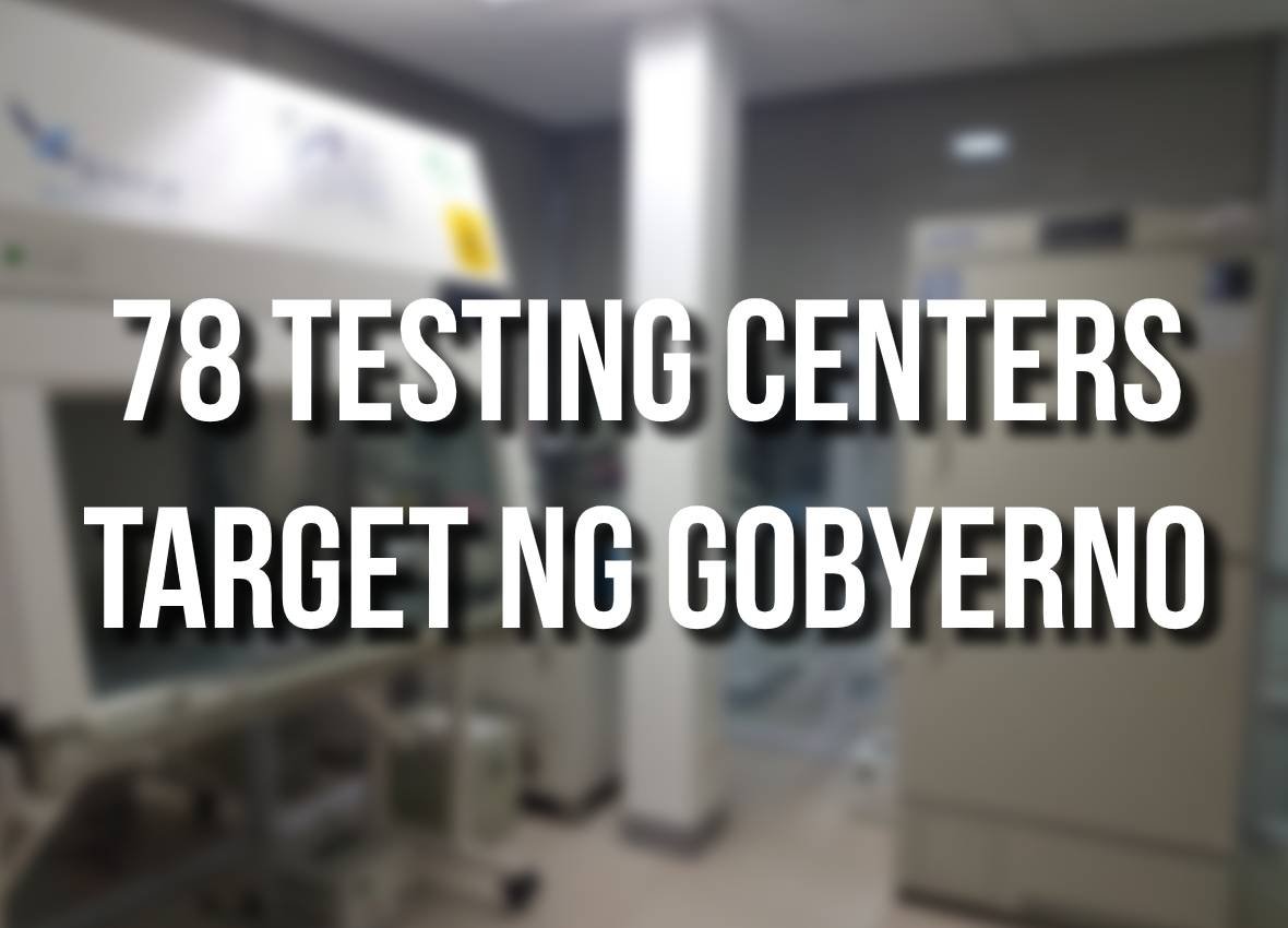 PUNTIRYA ng gobyerno na umabot sa 78 testing centers sa buong bansa sa Mayo 30.