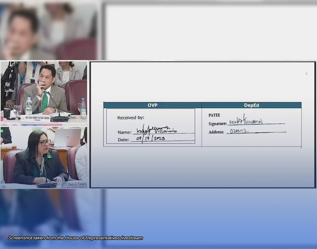 “Makikita po natin ‘yung medyo hindi ho kapani-paniwala. Ako, ordinary po ako na tao, I’m not an auditor, but as you can see it, pareho po ‘yung pangalan nila, Kokoy Villamin. Yung acknowledgment receipt from the [OVP] and at the same time, from the DepEd, the same person, Kokoy Villamin from Ozamiz,” ani Lanao del Sur Rep. Zia Alonto Adiong.