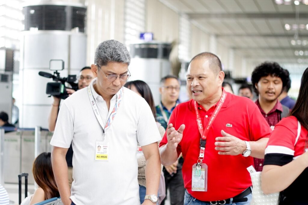 AirAsia Philippines CEO Ricky Isla with NAIA Terminal 2 Manager Joselito Sunga inspects T2 check-in counters