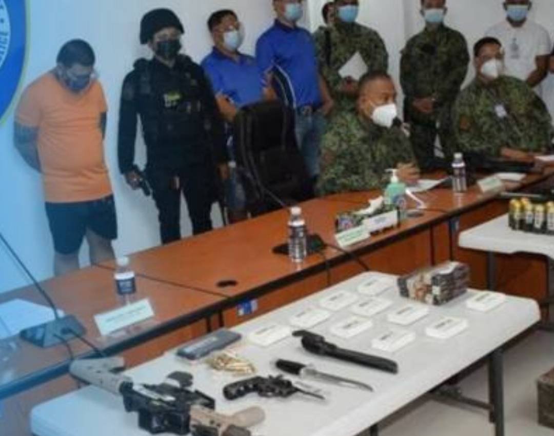 isang 0470TRW grenade launcher, isang Norinco AK47 assault rifle, MC-90 CAL 7.62, santambak na spare magazines, iba’t ibang klase ng bala, at isang MK2 fragmentation grenade.