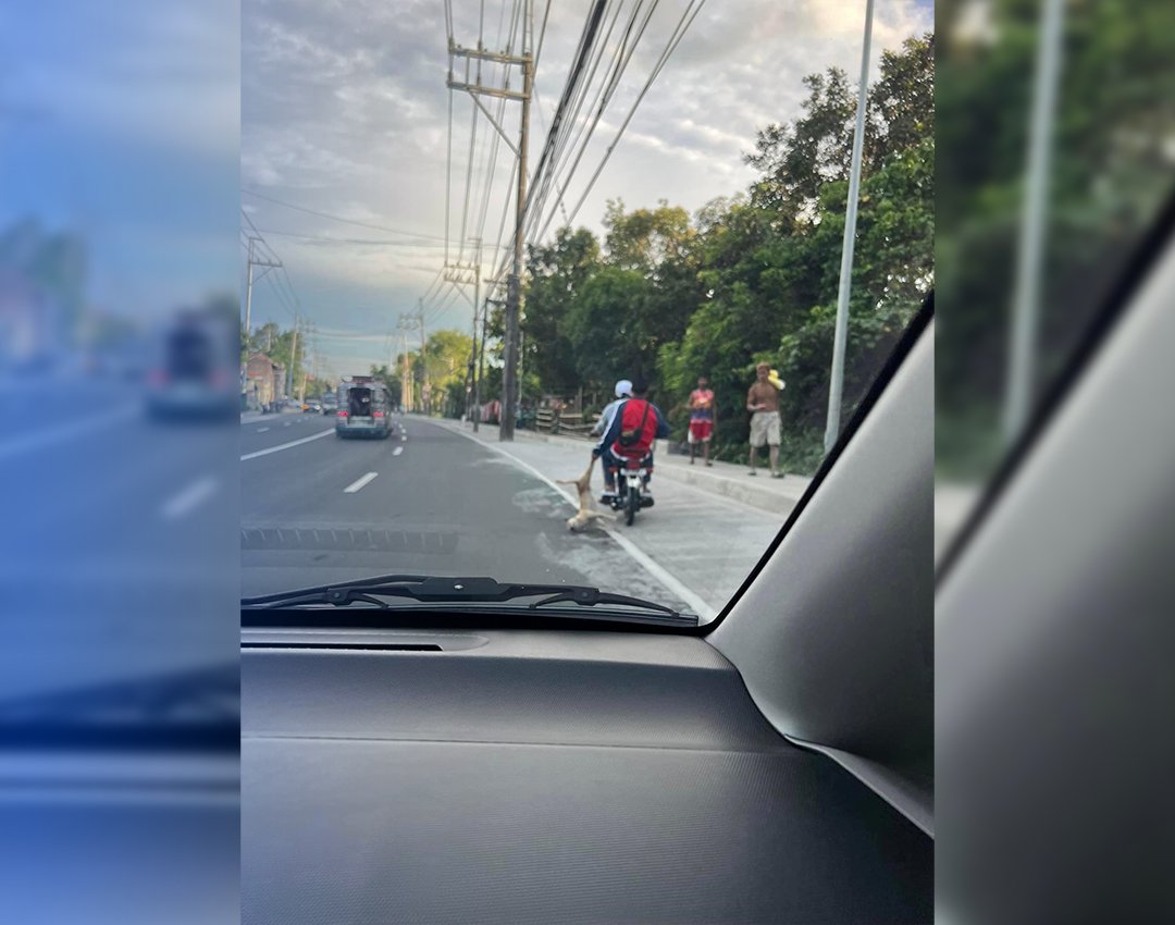 Base sa video na kumakalat sa social media, makikitang buhay pa ang aso habang kinakaladkad nang patiwarik ng backrider habang tumatakbo ang motorsiklo.