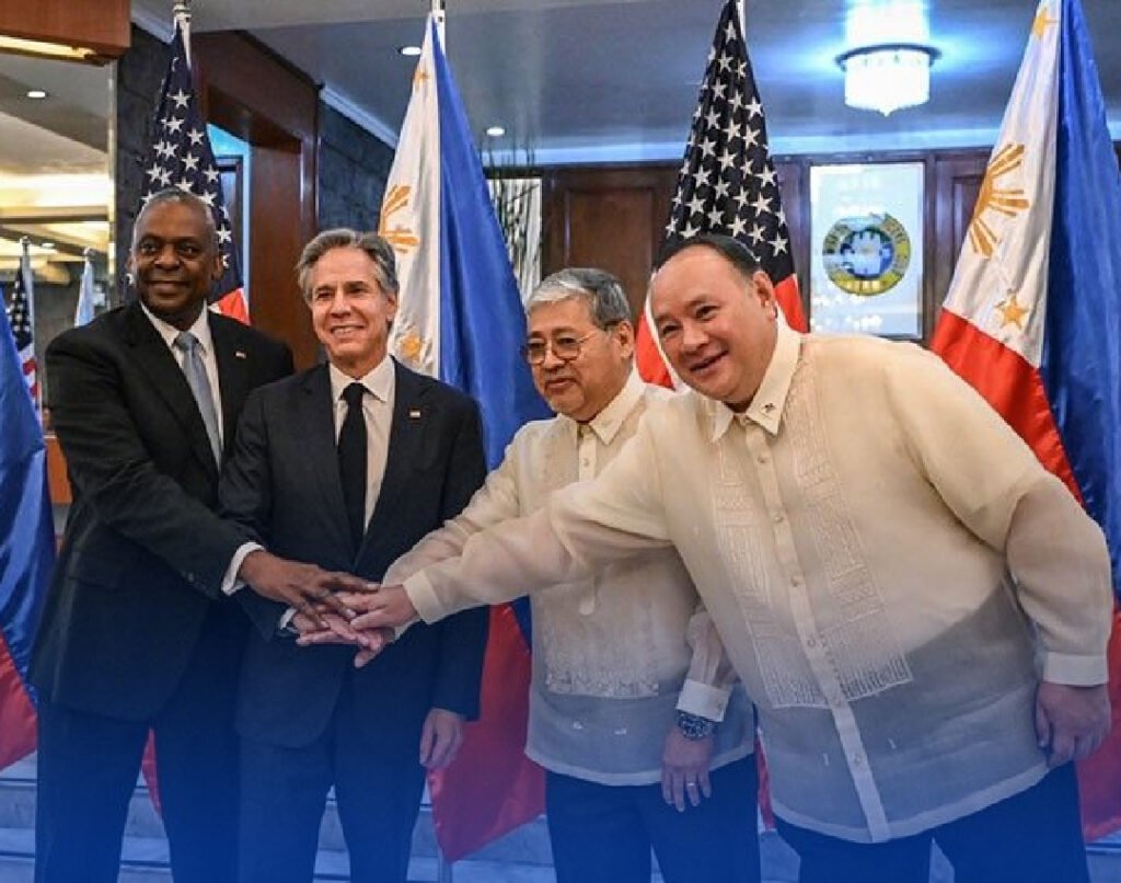 NAKIPAGPULONG si Secretary of State Antony J. Blinken at Defense chief Lloyd J. Austin III ng Estados Unidos kina Defense chief Gilberto Teodoro Jr. at Foreign Affairs chief Enrique Manalo ng Pilipinas sa Quezon City, nitong Martes. Dumating ang mga ito sa Camp Aguinaldo para sa 4th Philippines-US Foreign and Defense Ministerial Dialogue kung saan inaasahan na pag-uusapan ang ‘defense and security’ at economic cooperation. Ayon sa government sources, inaasahan nila na tatalakayin ang pagtatapos bago pa ang yearend ng mahahalagang information-sharing pact tinawag na General Security of Military Information…