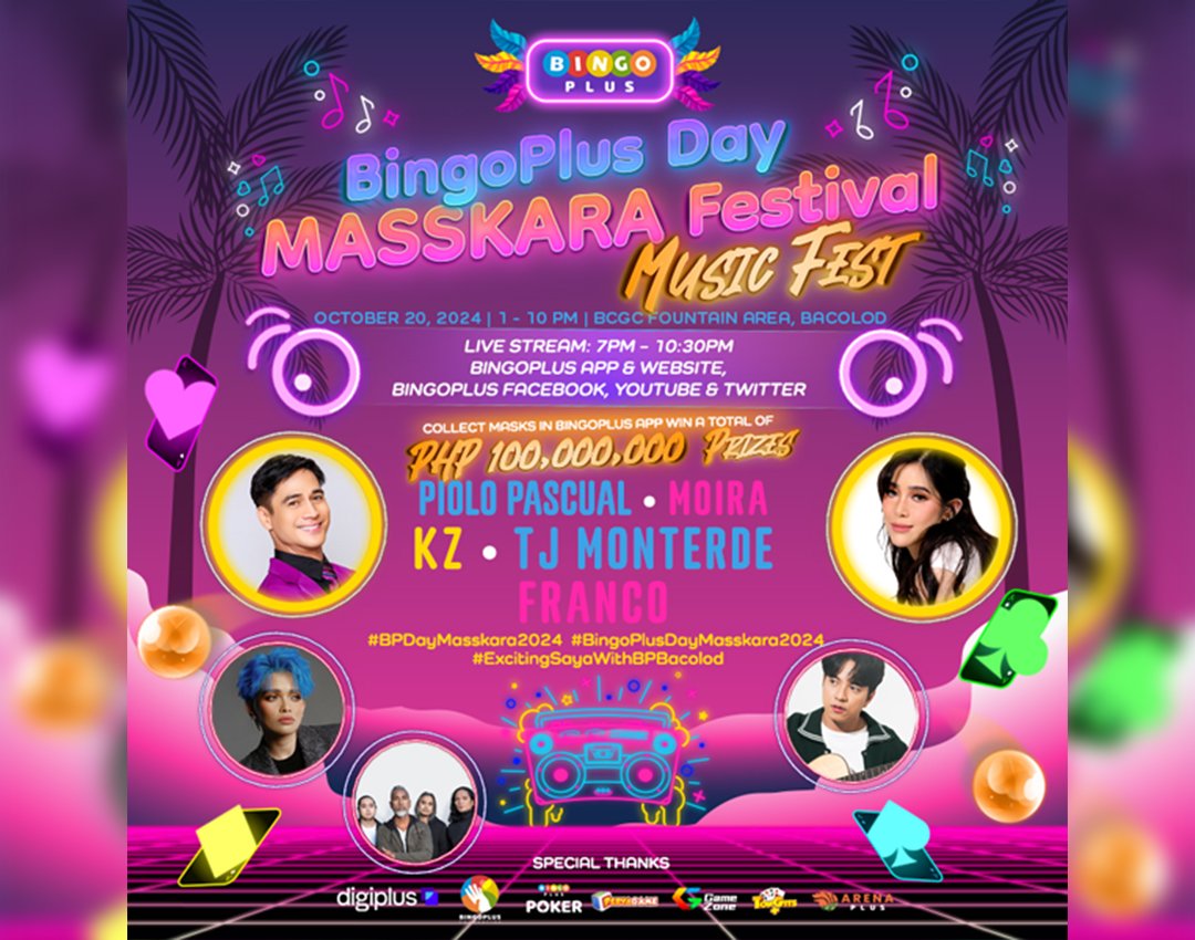 Mapapanood ang BingoPlus Day Masskara Festival Music Fest sa BingoPlus App, Website, Facebook, Twitter and YouTube Pages.