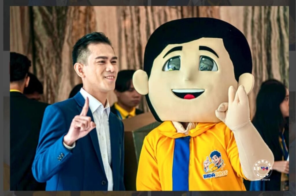 Mr. Von Basa, Founder & CEO Bida Boss Incorporated kasama ang Bida Boss Mascot