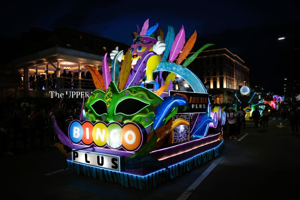 BingoPlus float illuminating the streets of Bacolod during the MassKara Electric Float Parade.
