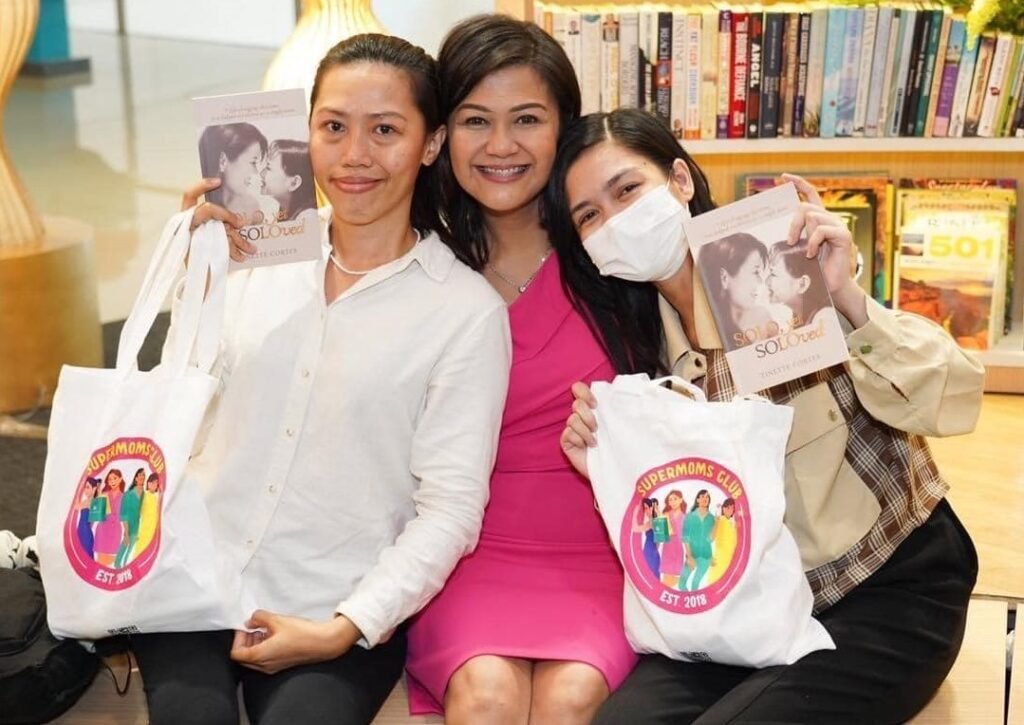 Author of “Solo, Yet SOLOved” and solo mother Tinette Cortes (middle) with members of the SM SuperMoms Club.