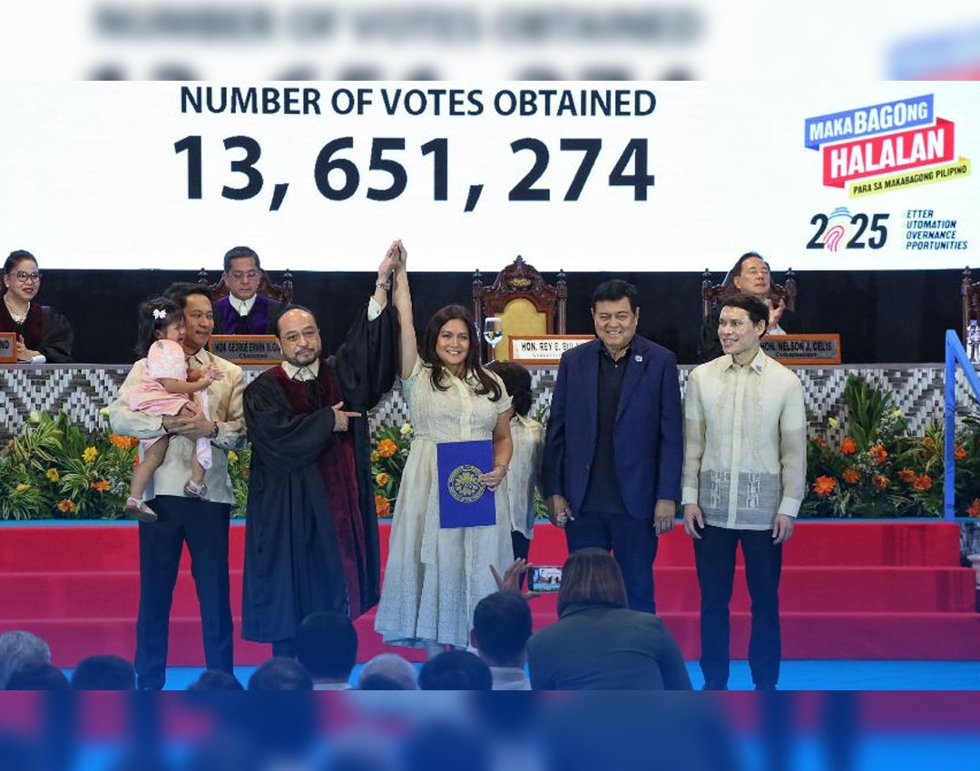 “I am grateful to God that we had a peaceful elections with a very good results. And today, with all humility, tinatanggap ko ang responsibilidad at karangalan na ito. And I promise that I will work twice as hard, and I will stand twice as firm and serve with all my heart. And exhibit leadership because leadership is about showing up, standing up when it is easier to play it safe and speaking out when it is more convenient to stay silent.
