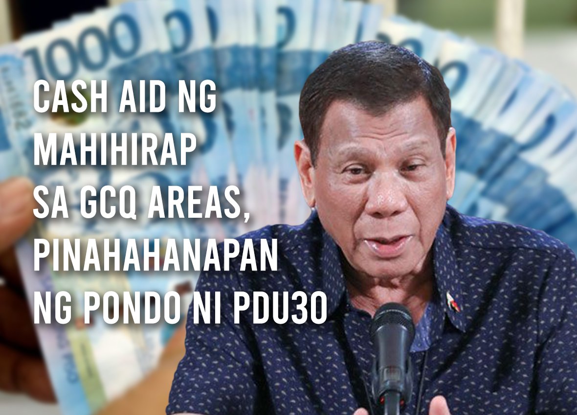 IPINAG-UTOS na ni Pangulong Rodrigo Roa Duterte kay Budget Secretary Wendel Avisado na maghanap ng pagkukunan ng pondo para makatanggap din ng cash aid ang mahihirap na pamilya sa lugar na isasailalim sa general community quarantine.