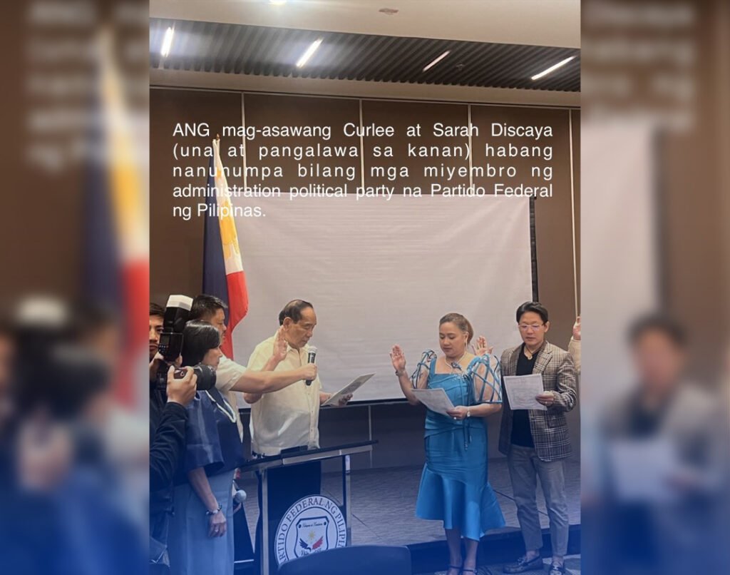 Si Partido Federal ng Pilipinas secretary general Tom Lantion habang pinapanumpa bilang mga bagong miyembro ng PFP mula sa Pasig City ang mag-asawang Curlee at Sarah Discaya (pangatlo at pang-apat mula sa kanan), kasama ang kilalang dating konsehal ng lungsod na si Mario Concepcion, Jr. (pangalawa mula sa kanan) at ang dating chairman ng Brgy. Bambang na si Reynaldo Samson, Jr. (dulong kanan) PASIG City —- Tinatayang mapapalaban si Mayor Vico Sotto sa darating na 2025 midterm election matapos manumpa bilang miyembro ng Partido Federal ng Pilipinas ang mag-asawang benefactor…