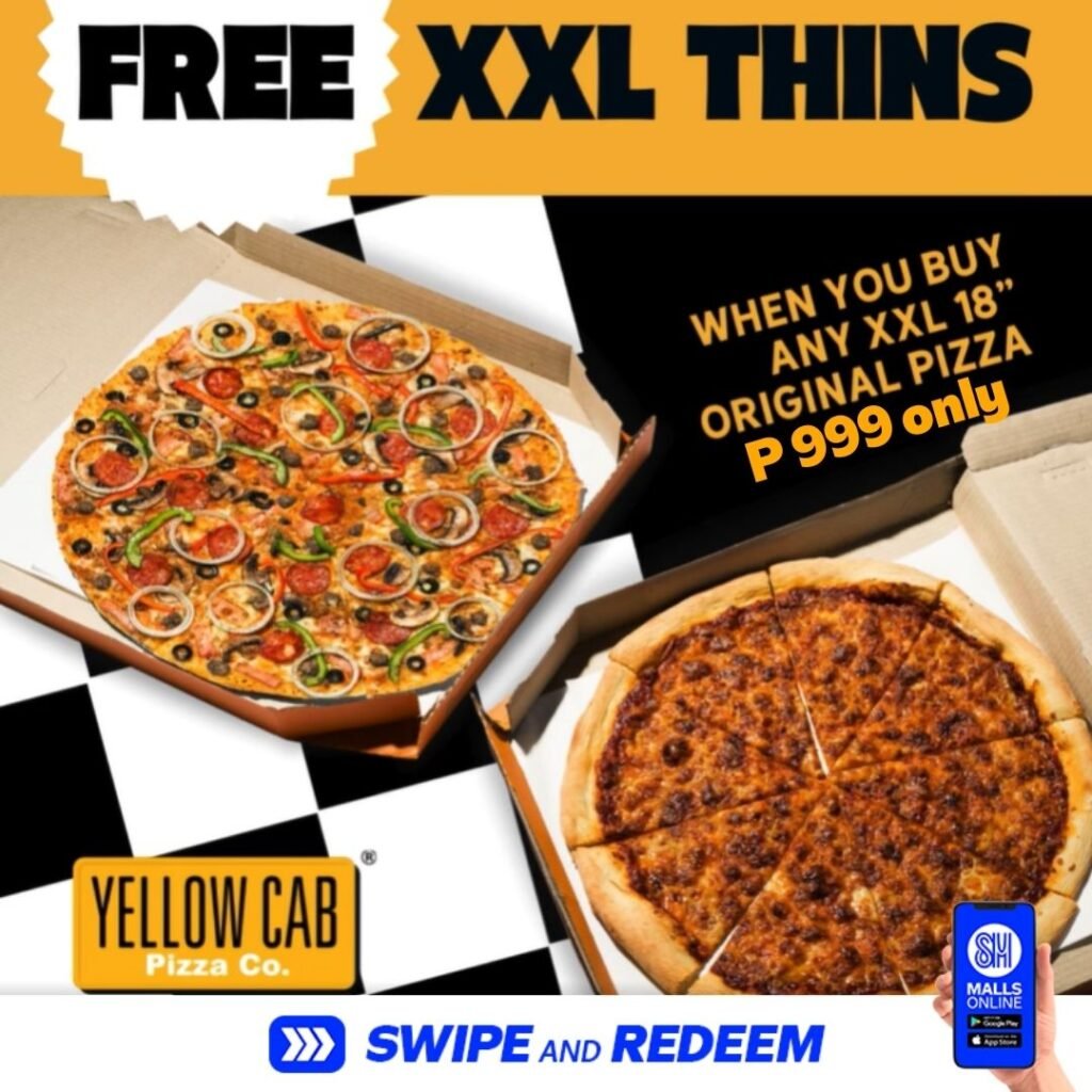 Buy any XXL 18″ Original Pizza, and get FREE XXL Thins in any flavor at P999