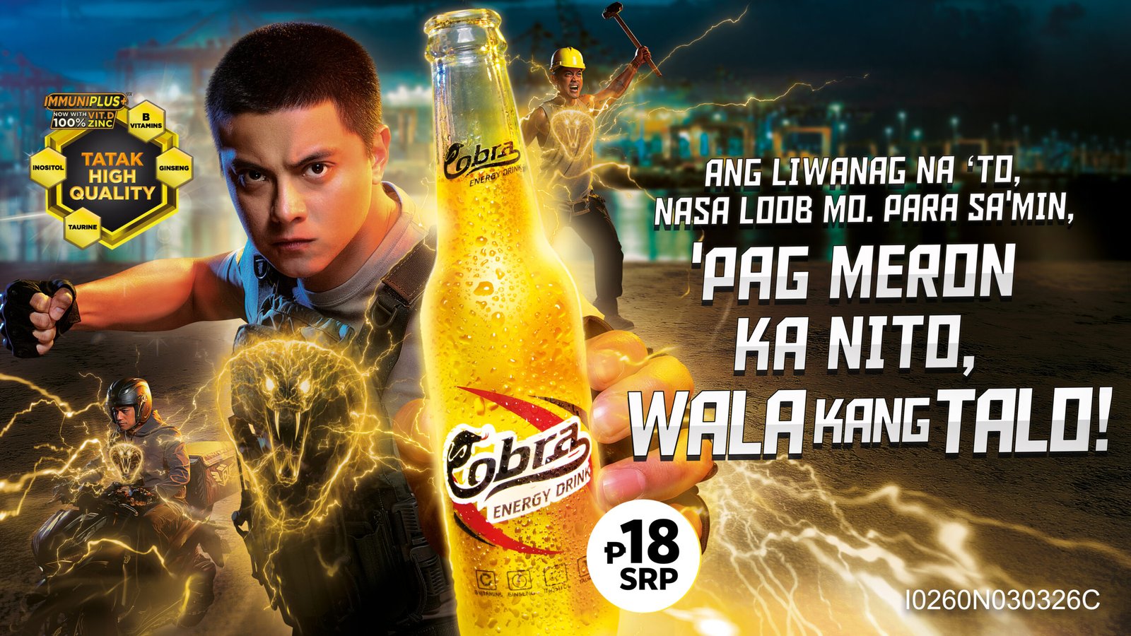 “Ang liwanag na ’to nasa loob mo. Pasiklabin with Cobra Energy Drink. Para sa’min, pag meron ka nito, wala kang talo.”