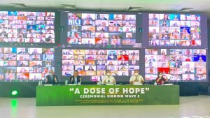 Following the success of the first “A Dose of Hope” project which secured 2.6 million doses of vaccine to the country, Presidential Adviser for Entrepreneurship and Go Negosyo founder Joey Concepcion, Country President of AstraZeneca Pharmaceuticals Philippines Inc. Lotis Ramin, Vaccine Czar Secretary Carlito Galvez Jr., Presidential Spokesperson Harry Roque, and Ambassador Daniel Pruce of the British Embassy, headed the signing of the second wave that consolidated a total of 17 million doses of the AstraZeneca vaccine for the country. Around 300 private sector donors and the 39 LGUs that procured the AstraZeneca vaccine also joined the monumental signing.