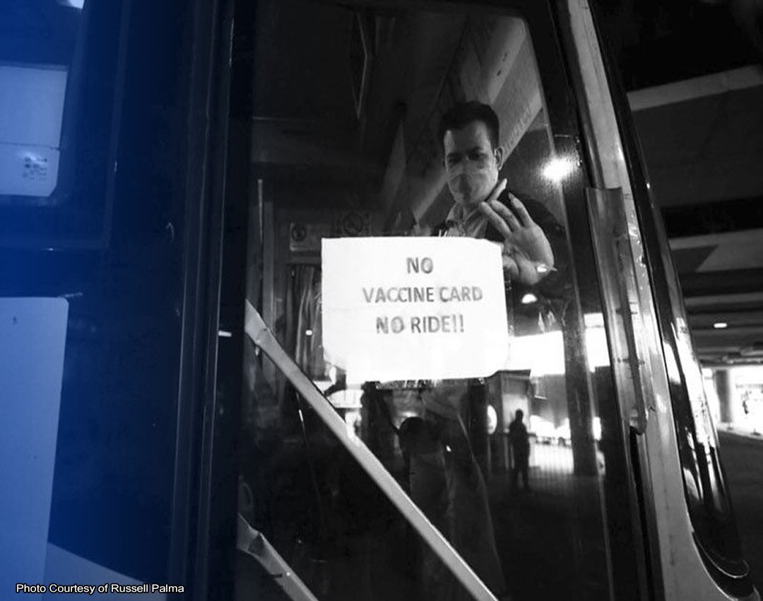 Simula noong Lunes, pinagbabawalan ang mga pasaherong hindi pa nababakunahan laban sa COVID-19 na sumakay ng bus, taksi, dyip, bangka, at eroplano patungo, mula, at sa loob ng Metro Manila, base na rin sa nasabing direktiba ng DOTr na naglalayong pigilan ang pagkalat ng mas nakakahawang Omicron variant.