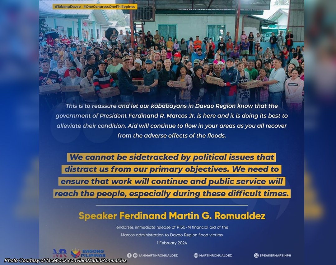 “Deepest gratitude to President Marcos Jr. and Speaker Romualdez for their compassionate support during this challenging time in Davao region. The gesture speaks volumes, providing not only essentials but also a sense of solidarity that uplifts spirits,” sabi ni Almario.