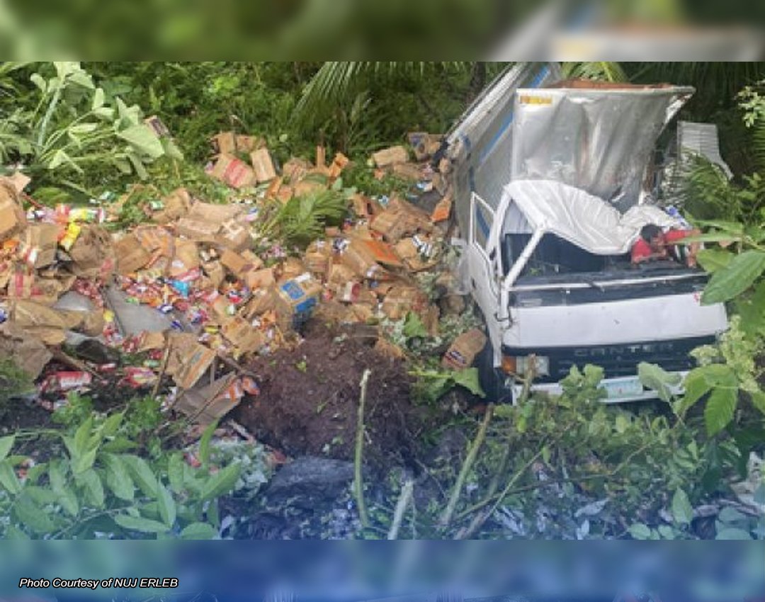 Nakatalon naman ang pahinante bago nahulog sa bangin ang truck ngunit grabe ring nasugatan makaraang bumagsak sa kalsada, habang nagkalat sa kalsada ang tumilapong dry goods na karga ng van.