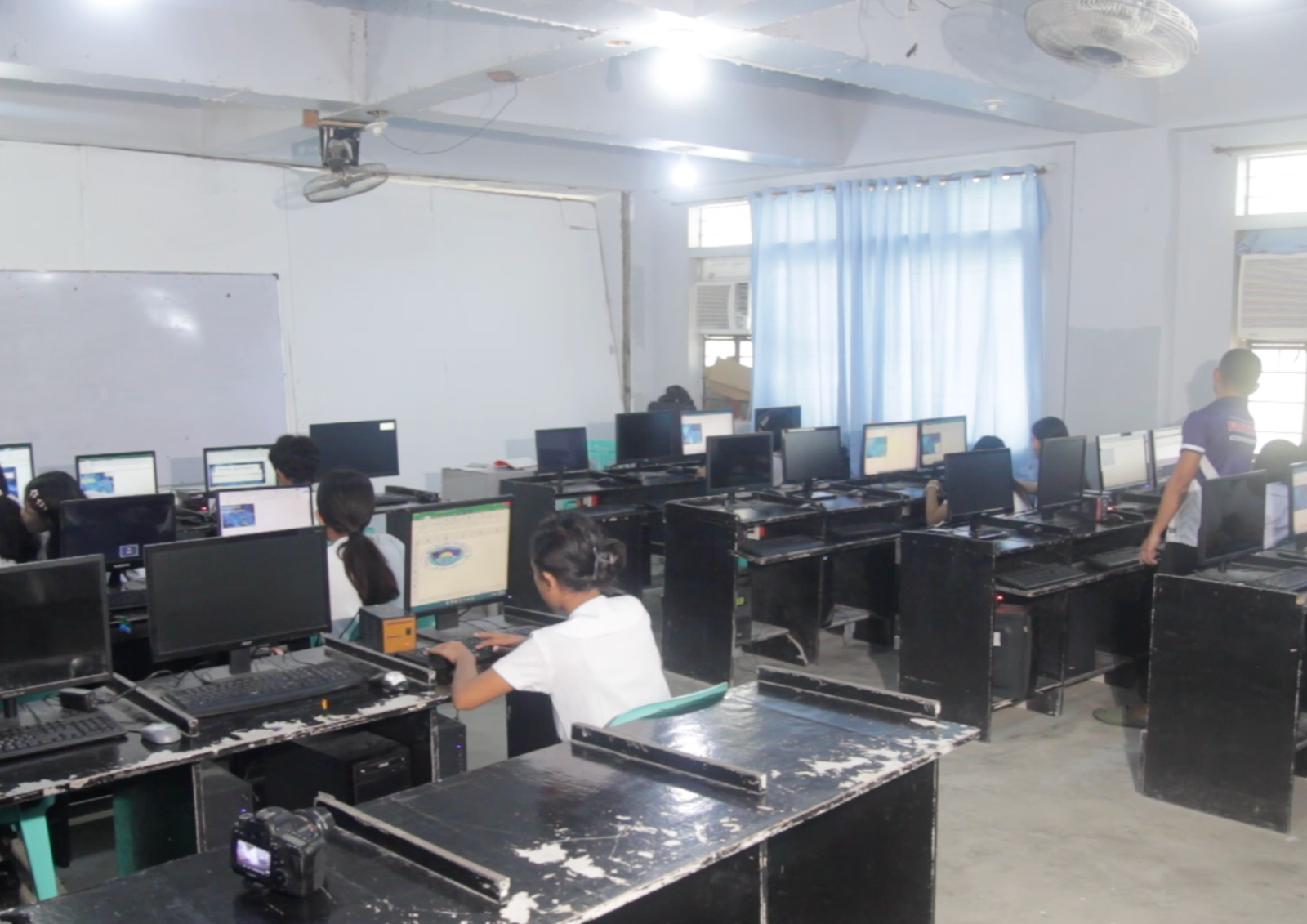 (Left to right photo) The former facility, which previously featured a minimal number of outdated computers, old tables and chairs, poor ventilation, and unrepaired walls, has been transformed by DigiPlus Foundation into a fully renovated, well-ventilated classroom. This upgraded classroom is now equipped with organized tables, comfortable chairs, a complete set of high-specification computers, a printer, and a 65-inch smart board.