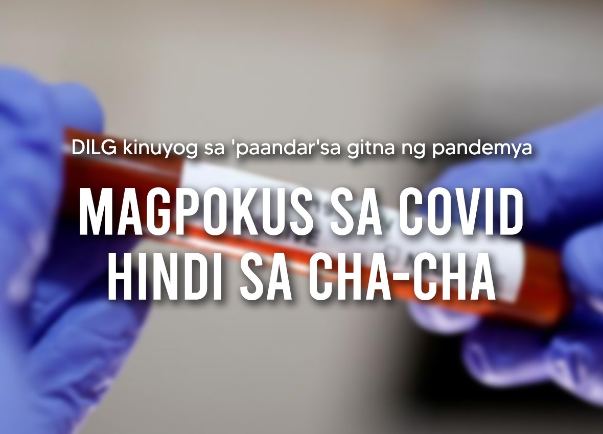 BINATIKOS ng mga mambabatas mula sa mababa at mataas na kapulungan ng Kongreso ang Department of Interior and Local Government (DILG) matapos isingit ang Charter Change (Cha-Cha) sa gitna ng paglaban sa pandemyang COVID-19.