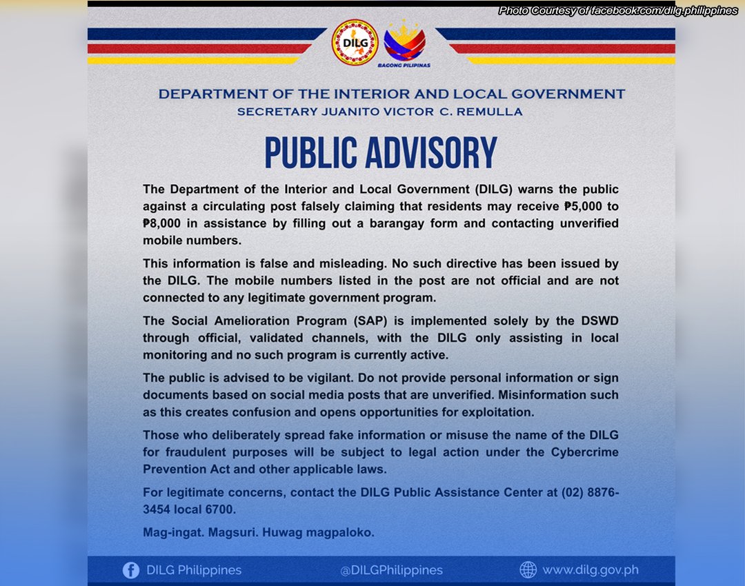 “The public is advised to be vigilant. Do not provide personal information or sign documents based on social media posts that are unverified. Misinformation such as this creates confusion and opens opportunities for exploitation, ayon pa sa paalalang inilabas ng tanggapan ni Secretary of the Interior and Local Government Jonvic Remulla.
