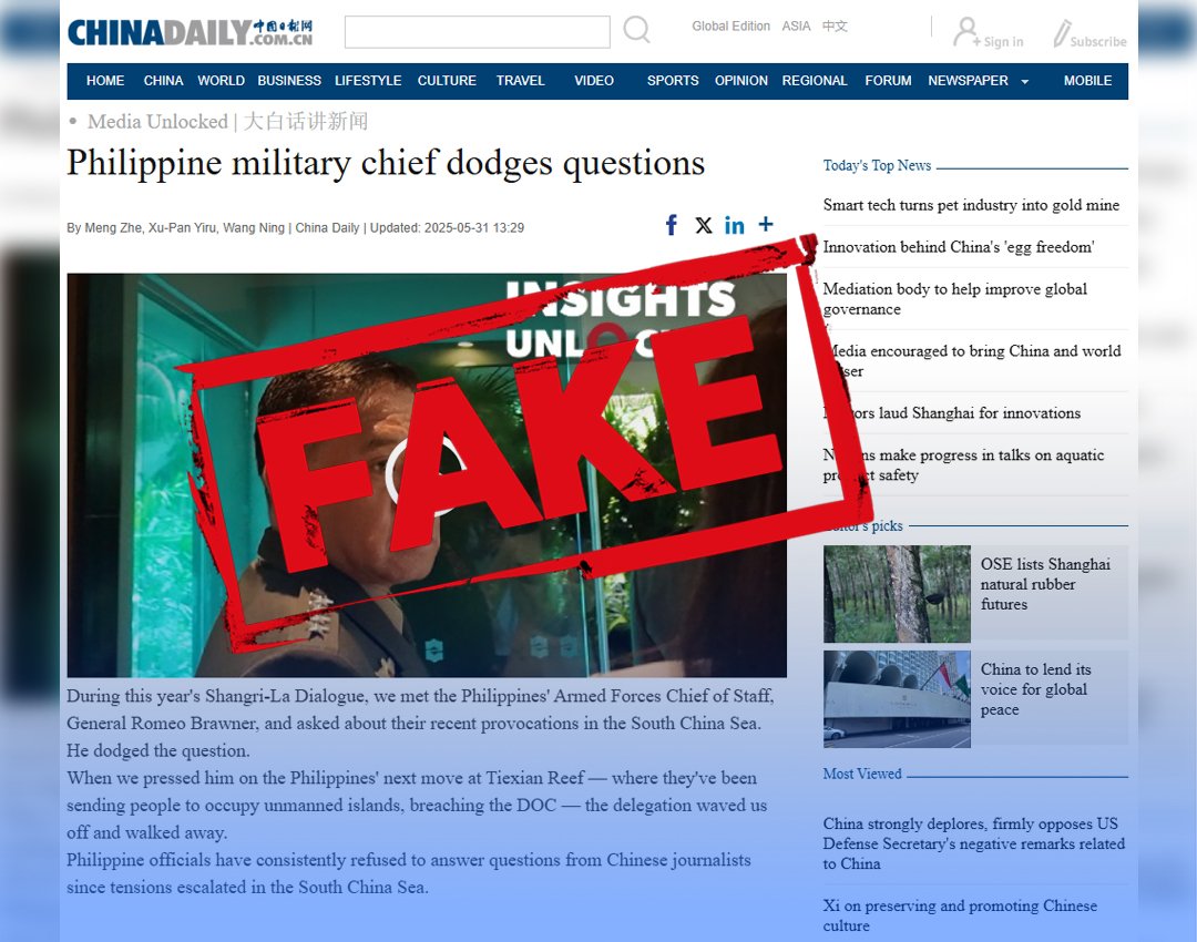 “The so-called journalists approached General Brawner outside of formal engagements, violating protocol and capturing selective footage used in the China Daily article titled ‘Philippine military chief dodges questions’.”