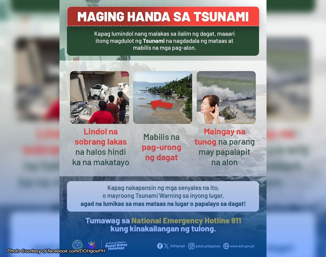 PINAGHAHANDA ng Department of Health (DOH) ang publiko sa posibleng mga aftershock at banta ng tsunami kasunod ng magnitude 7.5 na lindol na yumanig sa Davao Oriental.