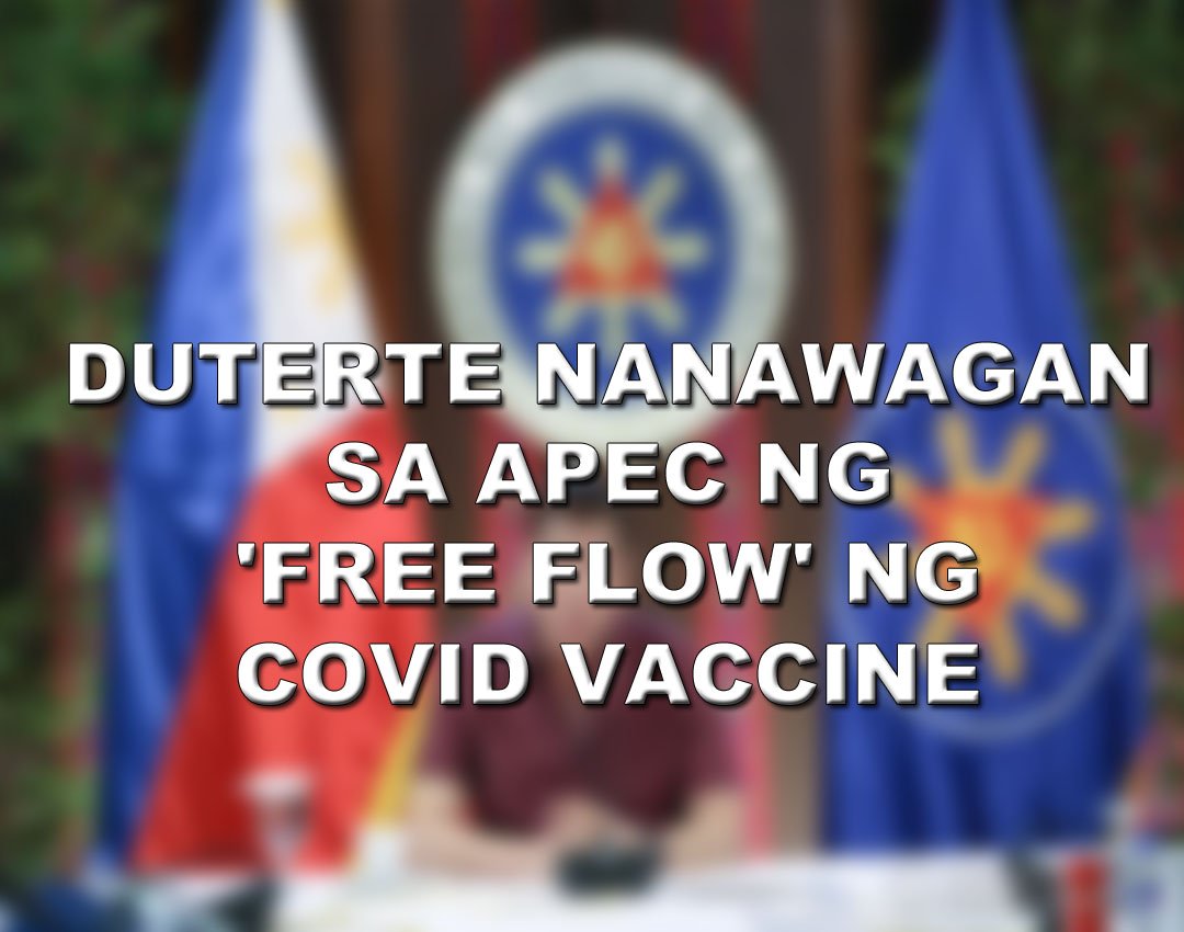 NANAWAGAN si Pangulong Rodrigo Roa Duterte sa mga member states ng Asia Pacific Economic Cooperation para sa “free flow” ng COVID-19 vaccines sa oras na maging available at maging ang iba pang suplay at teknolohiya para maiwasan ang pagkalat ng novel coronavirus.