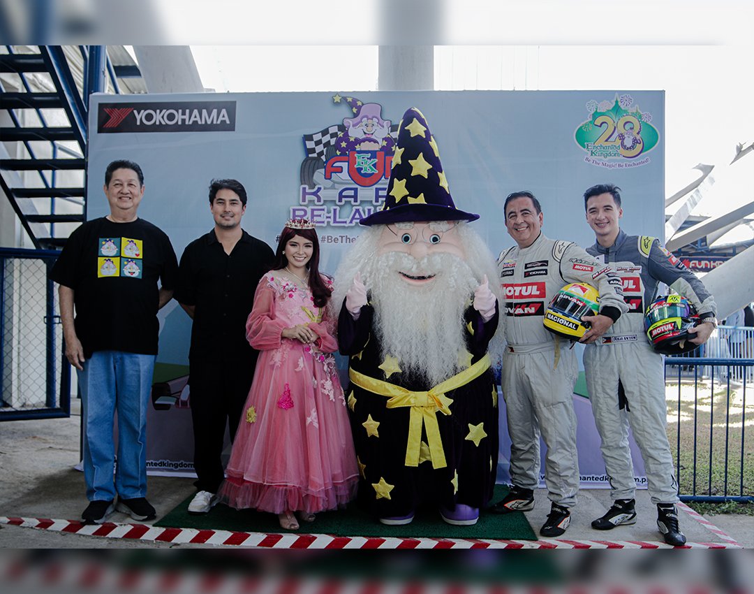 L-R: EK President and CEO Mario O. Mamon, international race car driver Marlon Stockinger, EK’s Princess Victoria and Eldar the Wizard, and father and son racing champions Carlos Anton and Iñigo Anton during the reopening ceremony of the EK Fun Kart.