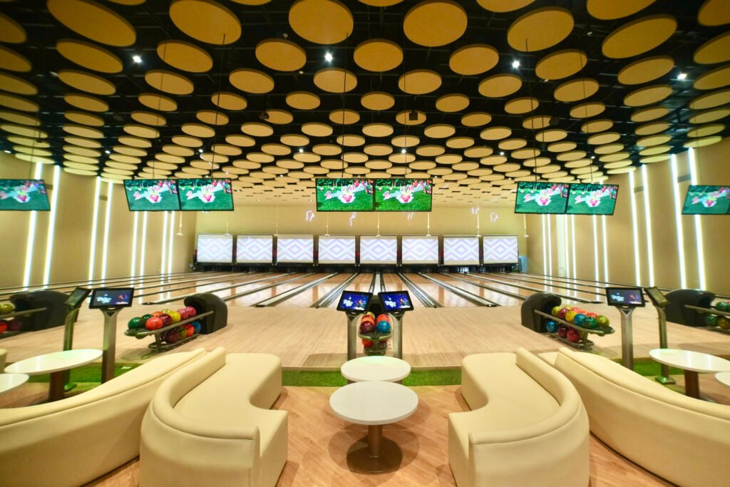 The four-lane private bowling section is equipped with cutting-edge Augmented Reality (AR) technology.