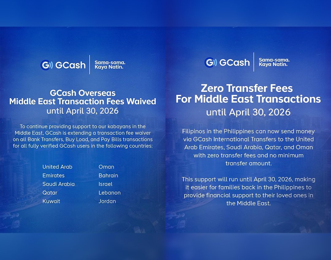 In addition, GCash has also extended zero fees for transfers to and from the Middle East until April 30, 2026, to help ease the financial burden of its users and their families amid the ongoing developments in the region.