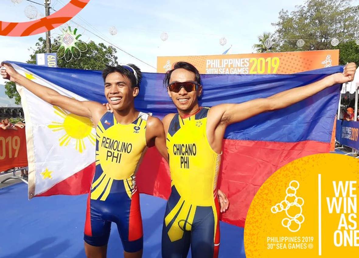 NASUNGKIT ni John Chicano ang unang gold sa Southeast Asian Games men’s triathlon sa Subic, Linggo.