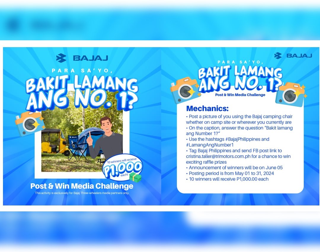 Kumusta? Have you received the Bajaj Camping Chair we’ve sent you? If yes, join our media challenge! Basahin ang mechanics below for a chance to win P 1,000 cash!