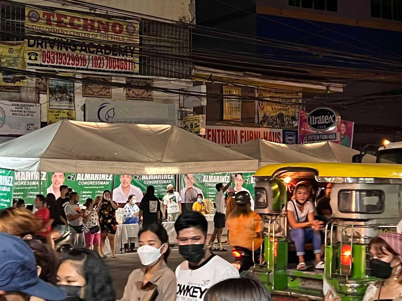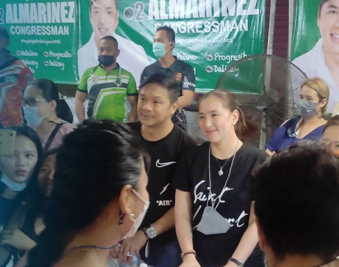 Sa mga video at mga larawan na nakunan ng mga netizens, makikitang lantaran ang pamimigay ng mag asawang Almarinez ng mga bottled water na nag uudyok sa mga deboto at nagbisita iglesia sa Simbahan ng Santo Sepolcro sa Barangay Landayan para iboto si Almarinez bilang Kongresista.