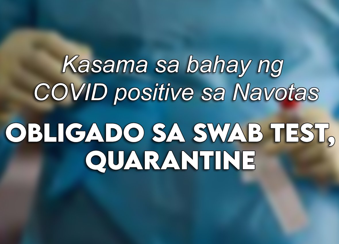 NILAGDAAN ni Navotas City Mayor Toby Tiangco ang Executive Order No. 042, series of 2020, na nagmamando sa lahat ng close contacts ng COVID-19 positive patients, na sumailalim sa swab test at quarantine.