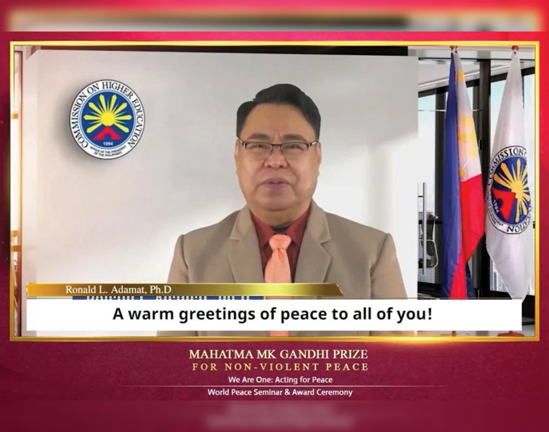 Si Commissioner Ronald L. Adamat ng Commission of Higher Education (CHED) ang kauna-unahang Pinoy na pinarangalan ng Mahatma MK Gandhi Prize for Non-Violent Peace Award noong ika-27 ng Marso, 2022 sa ginanap na World Peace Seminar at Award Ceremony na pinangunahan ng Mahatma MK Gandhi Foundation for Non-Violent Peace at inorganisa ng internasyonal na grupong pangkapayapaan, Heavenly Culture, World Peace, Restoration of Light (HWPL).