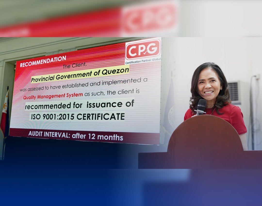 Matatandaan na nitong nakaraang Enero 16, taong kasalukuyan ay nakapasa ang Provincial Government of Quezon sa Stage 1 Initial Audit ng naturang certification company at ito ang naging daan upang makapagpatuloy sa ikalawa at huling yugto ng proseso bago makamtan ang sertipikasyon.