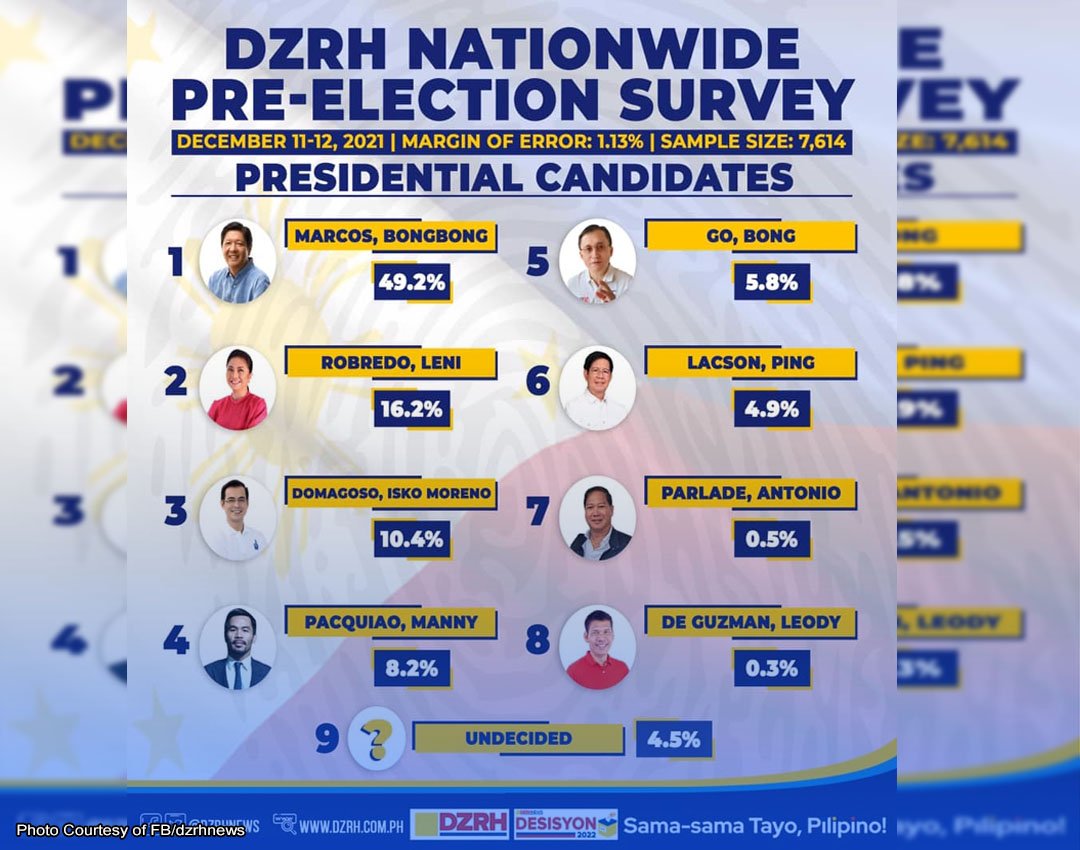 May 4.5% naman ang undecided, ayon sa report ng DZRH.