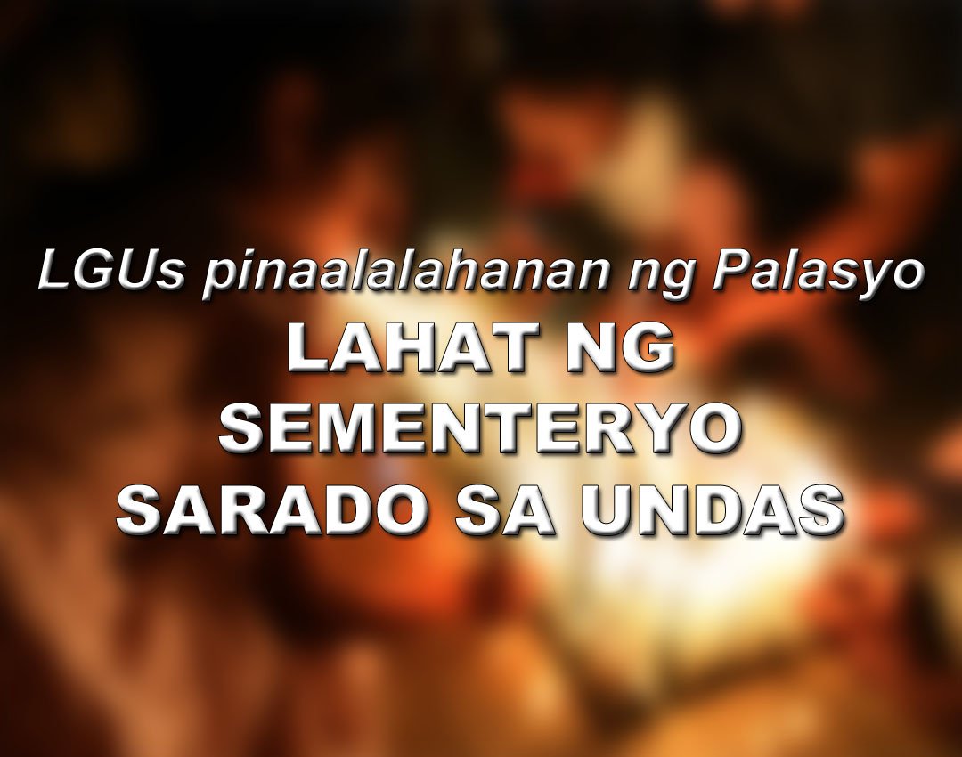 PINAALALAHANAN ng Malakanyang ang local government units na isara ang lahat ng sementeryo at columbarium mula Oktubre 29 hanggang Nobyembre 4 gaya ng ipinag-utos ng Inter-Agency