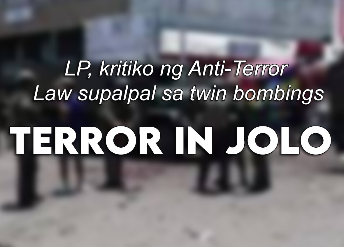 Samantala, masusubukan umano ang bagong Anti-Terror Law sa twin bombings sa Jolo, Sulu nitong Lunes na ikinamatay ng 15 katao kabilang ang walong sundalo, anim na sibilyan at isang suicide bomber.